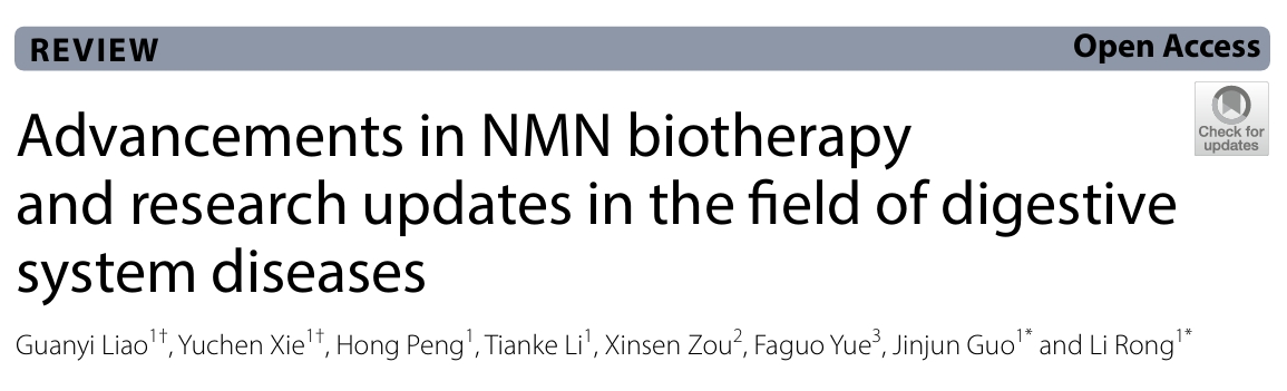 近年来,NMN作为各种疾病的治疗剂已被广泛研究,包括衰老相关疾病、糖尿病、神经退行性疾病和脑血管缺血性疾病。此外,它在肾脏、眼睛和生殖系统疾病的研究中也受到了极大的关注。然而,关于使用NMN作为消化系统疾病病例干预的研究有限。